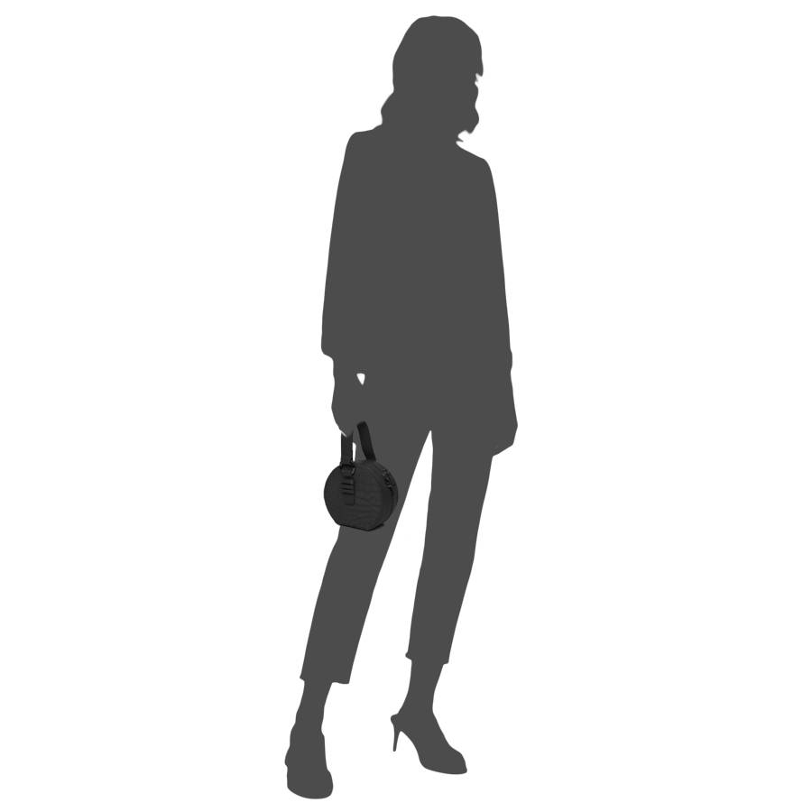 Raffinata e dalle linee pulite, dallo stile senza tempo, perfetta per i look casual, borsa di piccole dimensioni a forma circolare, in pelle stampa cocco di colore nero. Caratterizzata da un manico in pelle dollaro in tono e tracolla in catena color oro applicabile.