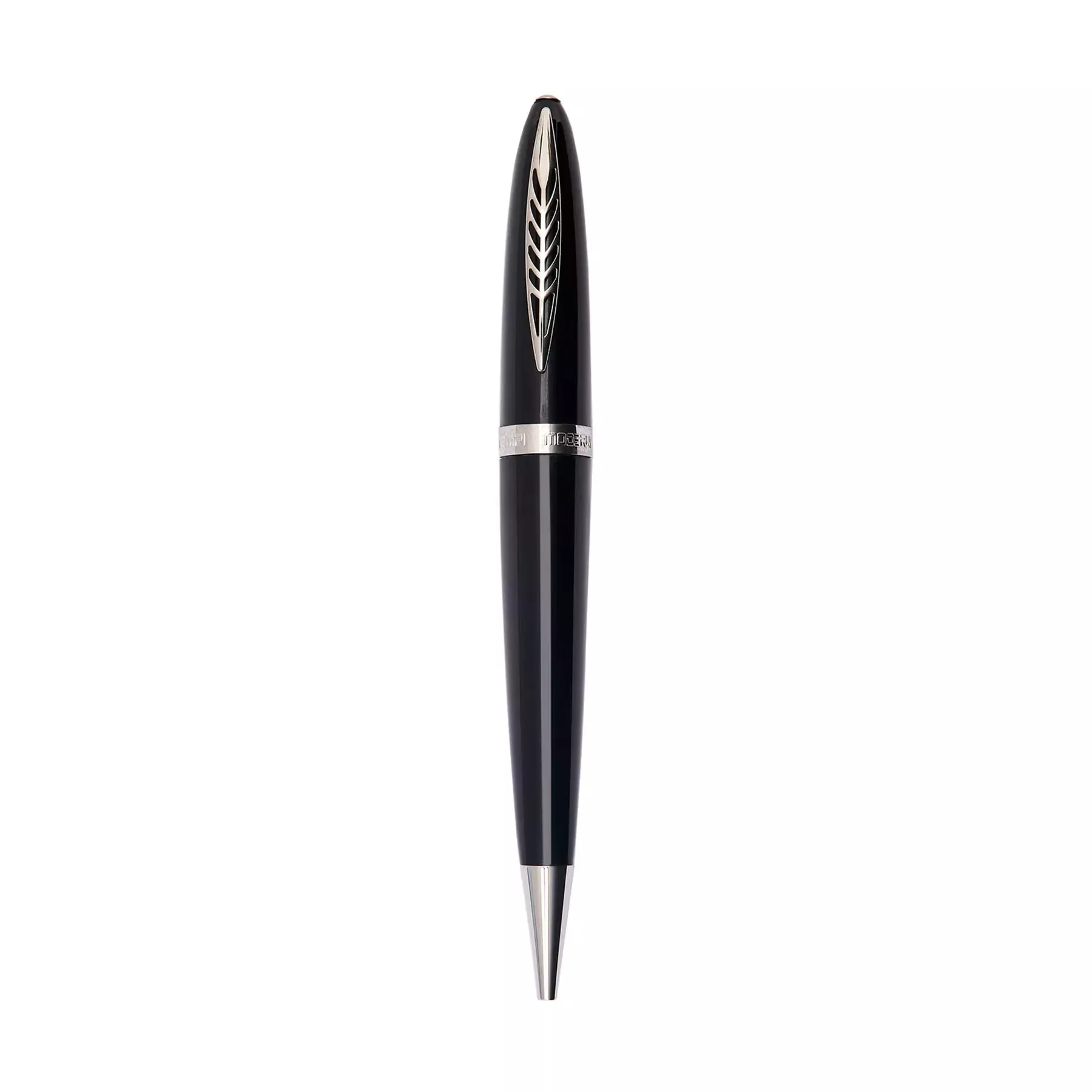 Tempi Moderni penna a sfera fa parte della collezione ispirata alla fusoliera del primo aereo a reazione. La sezione triangolare e gli angoli fortemente stondati rendono questa penna estremamente ergonomica e dallo stile estetico unico. In resistente ultraresina, con punta in acciaio e placcata in palladio è dotata di Lock System a magnete e ricarica refill. Completa la penna un elegante luxury box. La formulazione dei nostri inchiostri è appositamente studiata per evitare l'essiccazione. Made in Italy.