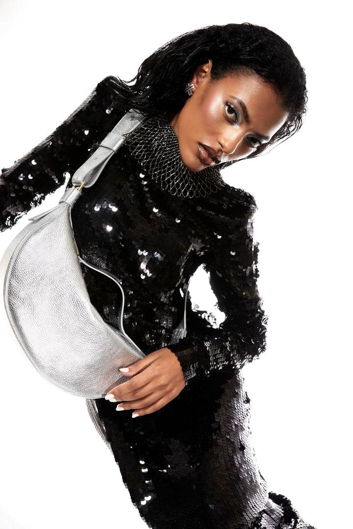 Roberta Gandolfi Micol Banana cross body in vitello martellato metal con tracolla regolabile