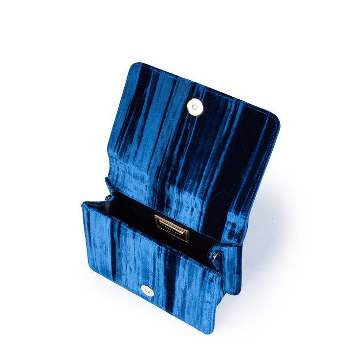 Semplice ma spettacolare questa mini bag dalle forme eleganti e sobrie Il luccichio del manico gioiello ci riporta alle atmosfere da mille e una notte La tracolla in catena dorata permette di indossare la borsa a spalla Adatta per una occasione speciale o anche per una serata fuori dagli schemi Sirenetta mini darà il tocco giusto al tuo look con classe e un pizzico di ironia Scheda Tecnica Materiale : velluto plissè (65%Viscosa 35% Cupro) Fodera :100% poliestere Chiusura: calamita Colore accessori metallici : col. Oro chiaro Piedini metallo : --- Misure:18 X 14 X 7 cm (lunghezza x altezza x profondità) Tracolla : catena di alluminio Lunghezza tracolla: 133 cm Luce manici : 8 cm Altri dettagli :---- Peso : 300 grammi Cura Pulire con panno morbido