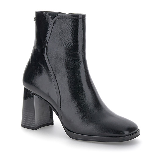 Stivaletto mid da donna in pelle lucida nera con vestibilità regular. Un modello dalle linee pulite e sofisticate, il cui design elegante è completato da un tacco squadrato, che offre un comfort inimitabile senza rinunciare alla classe. Questo stivaletto con tacco dallo stile raffinato è ideale per chi cerca un look formale e chic, perfetto da abbinare sia ad abiti da ufficio che da sera. La calzatura con Blusoft Memory® ha un particolare plantare estraibile dotato di un inserto in memory foam nell'area del tallone che ammortizza gli urti della camminata. Il plantare è costruito con uno speciale materiale con struttura a cellule aperte che assicura un'altissima traspirabilità. Suola in gomma, altezza tacco (cm): 7.5.Materiale:Tomaia in pelle - Suola in gomma