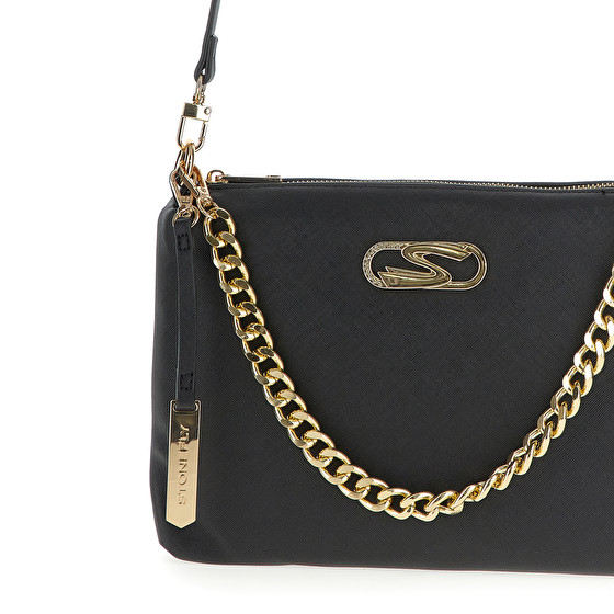 Borsetta in pelle sintetica nera a spalla con logo monogramma Stonefly, accessorio pendente e catena. Questo modello presenta due tasche interne: una con chiusura a zip, per tenere al sicuro i tuoi oggetti più importanti, ed una in pelle sintetica, che si abbina perfettamente al colore esterno della borsa aggiungendo un tocco di eleganza e funzionalità. Questa borsa è dotata di una seconda tracolla aggiuntiva, che la rende ancora più pratica e funzionale, aggiungendo un tocco di stile in più al suo design raffinato. Altezza: 18 cm Larghezza: 26 cm Profondità: 6.5 cmMateriale:Materiale sintetico 100%