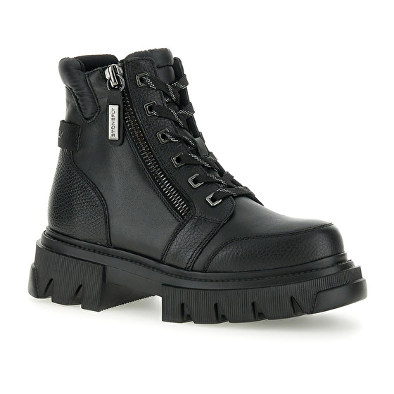 Stivaletto mid da donna in pelle di vitello. La scarpa dal look deciso e informale, perfetto per la città e le serate in compagnia. La cerniera laterale rende la calzata comoda e pratica e lo stile ancora più particolare. La calzatura incorpora la tecnologia Second Skin® che rende le scarpe morbide e leggere, proprio come indossare una seconda pelle. Suola in EVA, altezza tacco (cm): 5.8. Il modello presenta una calzata comoda, consigliamo l'acquisto di una taglia in meno rispetto a quella abituale.Materiale:Tomaia in pelle - Suola in EVA