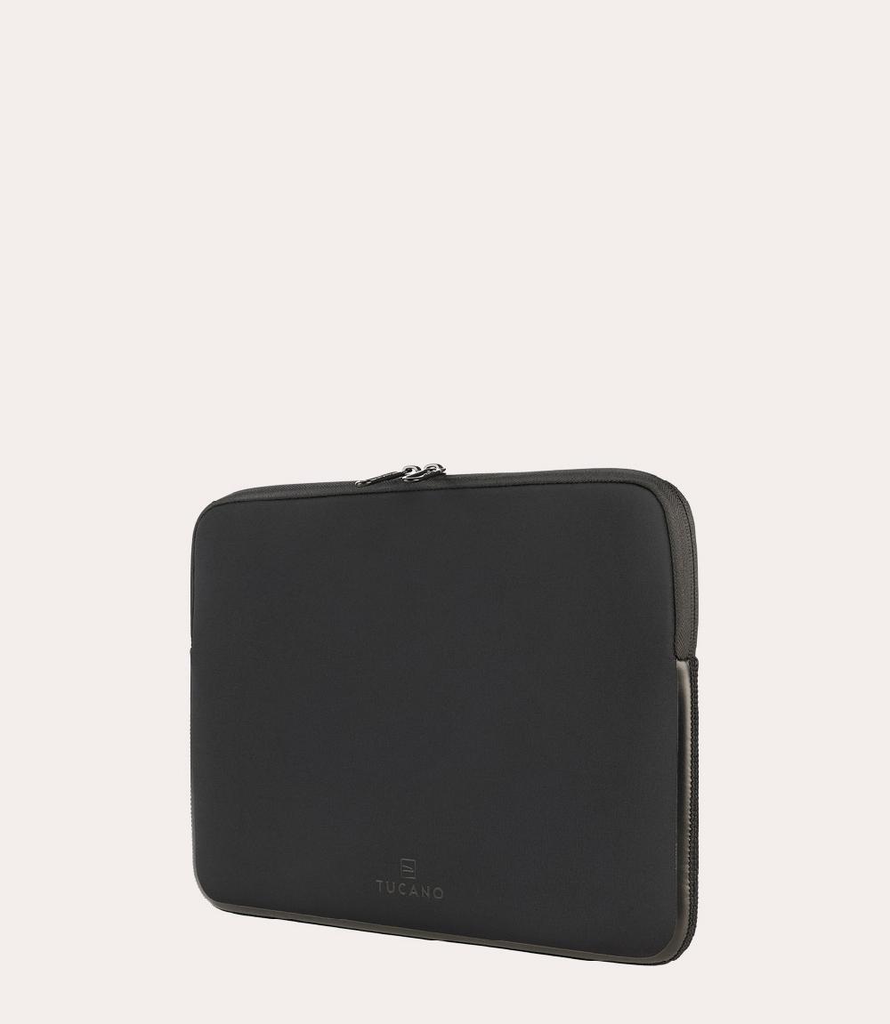 Bordo in contrasto colore e tonalità particolari caratterizzano la custodia Elements, per MacBook Pro 14" e laptop 13", realizzata in materiale ottenuto parzialmente da plastica riciclata. Dotata di fascia interna Anti-Slip-System,concepita per bloccare il device, e di cucitura Flat-lock, per uno spessore minimo e un'adferenza perfetta, la Second Skin Elements ha un vano interno protettivo in morbido materiale antigraffio.