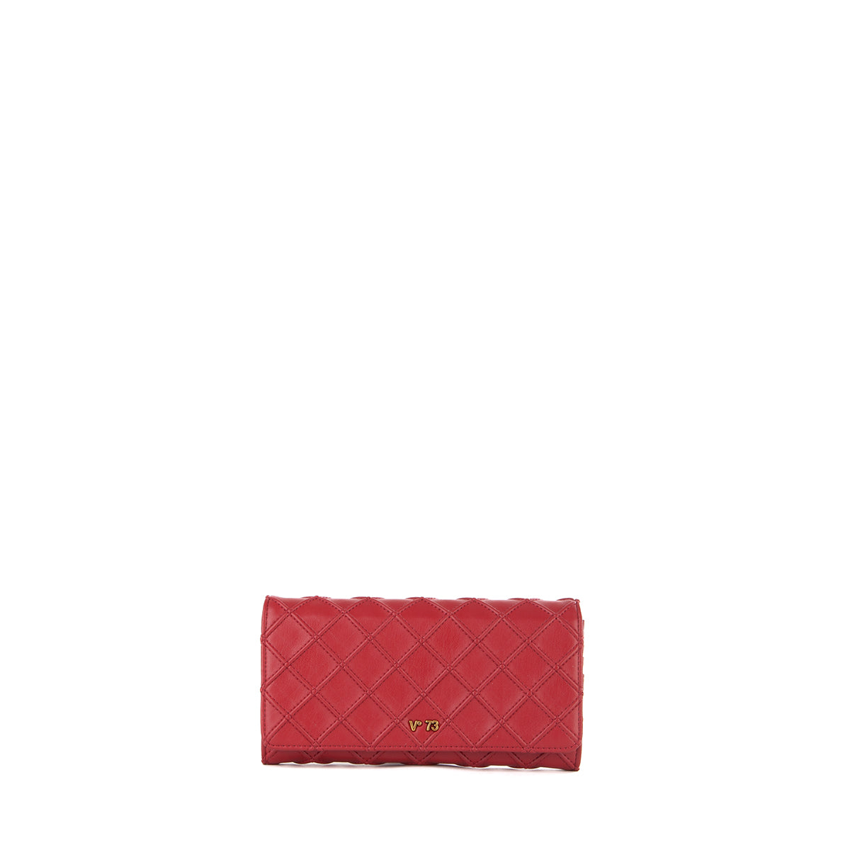 Portafoglio realizzato in nappa ecofriendly con motivo matelassé. Metallerie color oro antico.