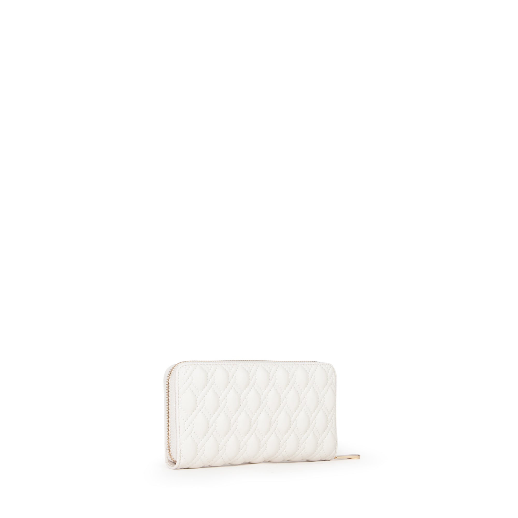 Portafoglio realizzato in nappa ecofriendly con matelassé d'ispirazione veneziana. Metallerie color light gold, letterine V73 in metallo.