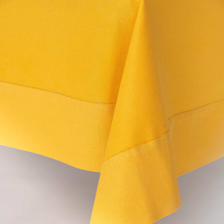 Tovaglia ricamata in 100% lino, una tovaglia semplice, colorata con un ricamo orlo a giorno che percorre tutto il bordo. La purezza del lino e la cura del ricamo ne fanno un elemento unico e versatile.